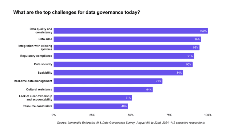 Maintaining high data quality is one of the most significant challenges organizations face. Inconsistent data can lead to poor decision-making, unreliable analytics, and compliance issues, which can ultimately impact the organization's credibility. Effective data governance requires ongoing data cleansing processes, validation techniques, and consistent monitoring to ensure data remains accurate and up-to-date.