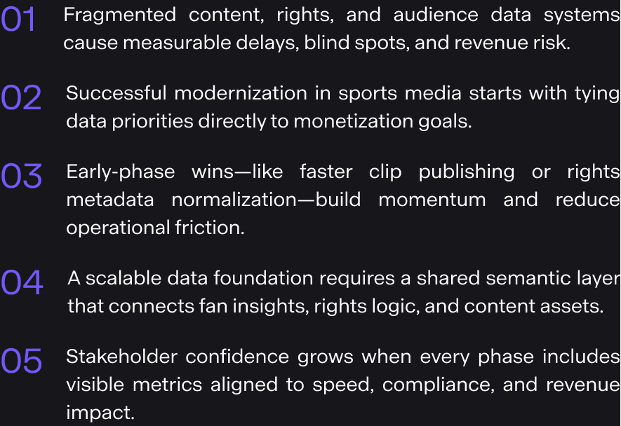 Need a tactical view? Access our tactical playbook for data modernization in sports media.